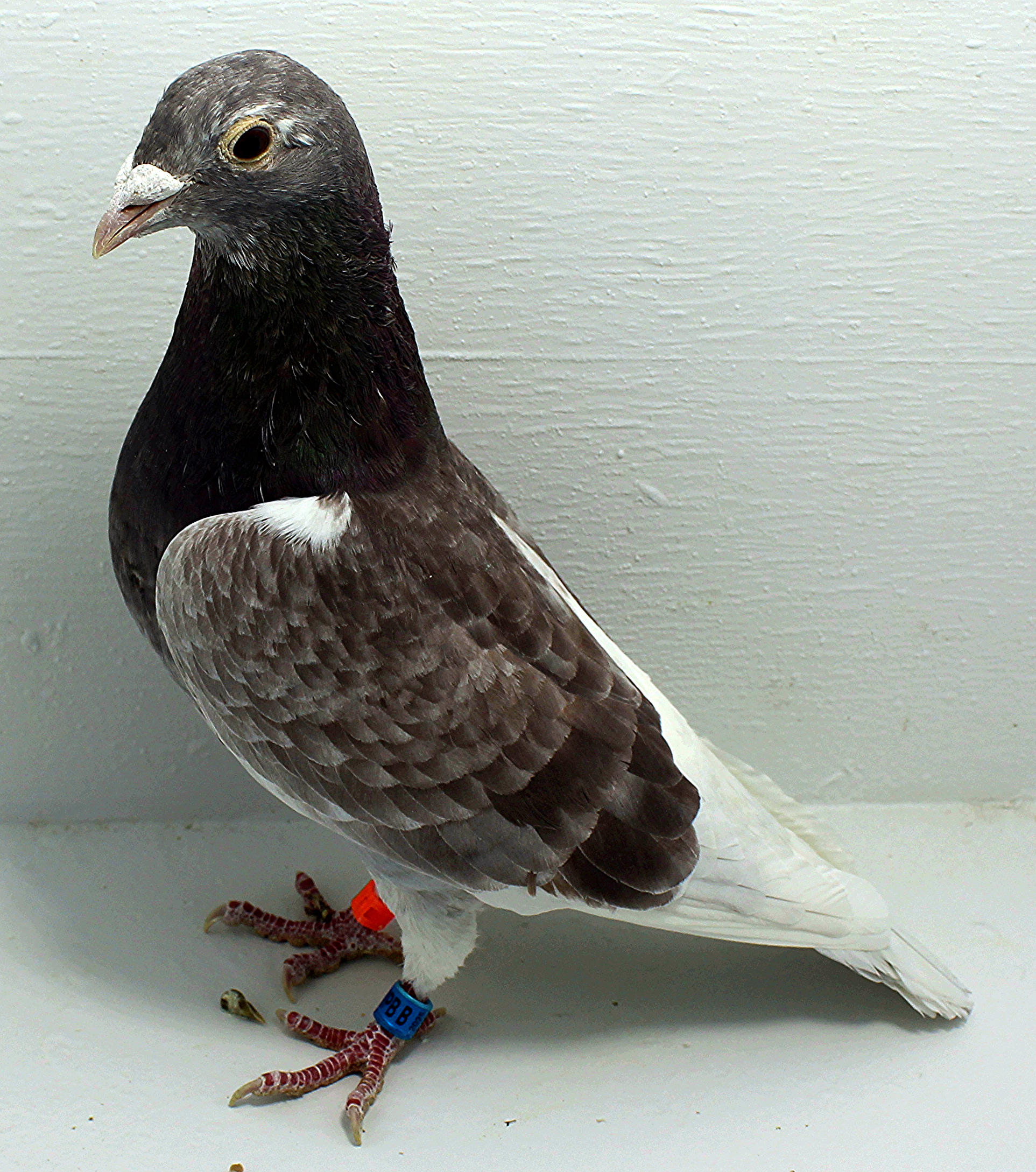 Birds which are from a family of “old line” PAUL SIONS. They have been maintained and kept straight for about 60 years by Harvey Peer of New Jersey through a judicious program of linebreeding and inbreeding and strict selection. This family is primarily based on the old and very successful Landing View Loft “Black Eyed Sions” and with the addition of some select birds a number of years ago from the Charles Heitzman and Madrona Loft [Paul] Sion lines. It is interesting to note that a large number of the present-day Sions in this family still have the dark mahogany / chestnut / wine-colored eyes which were so characteristic of the old Landing View Sions. These Sions are generally medium in size with some being a little below medium and some sli
