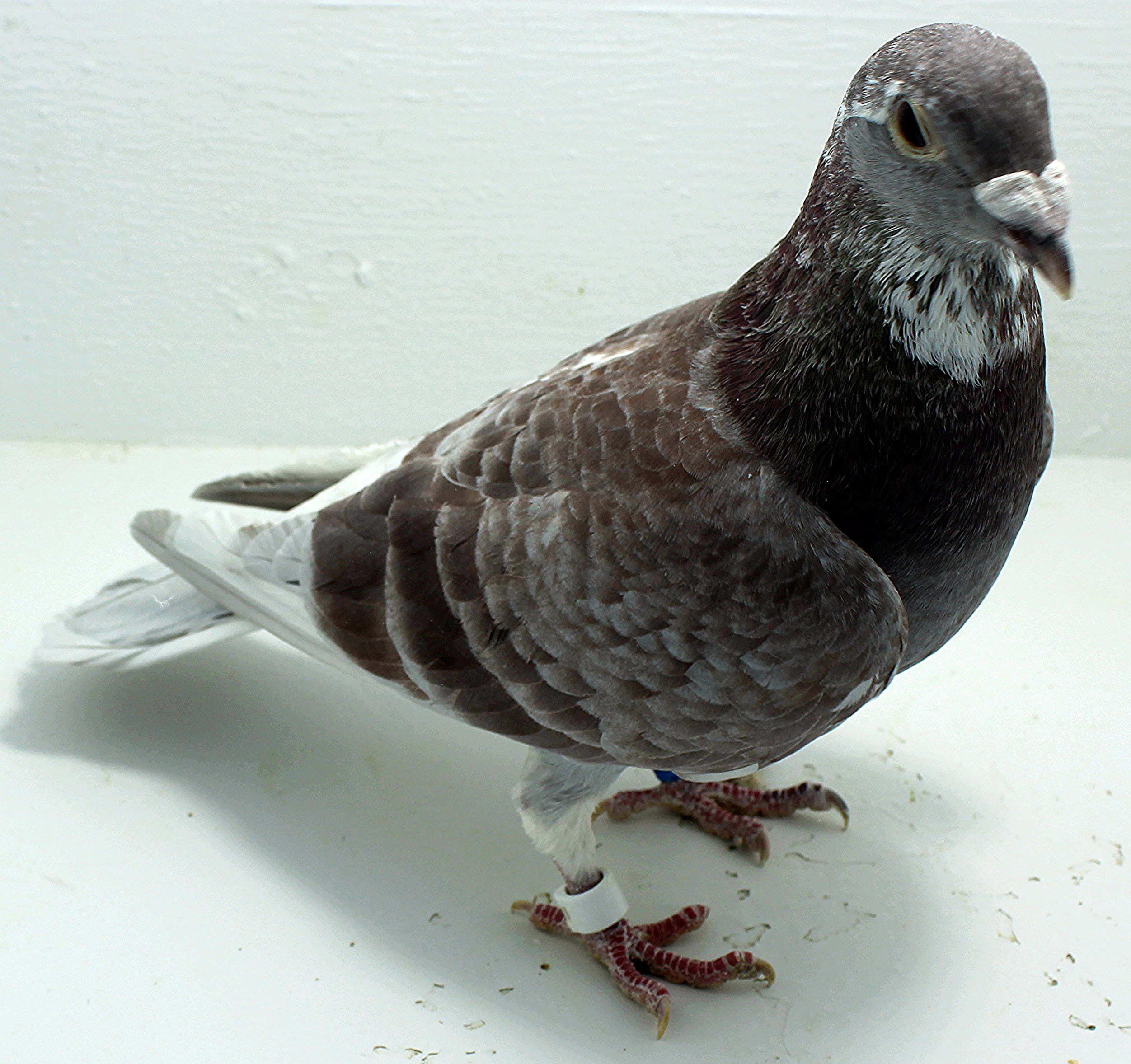 Birds which are from a family of “old line” PAUL SIONS. They have been maintained and kept straight for about 60 years by Harvey Peer of New Jersey through a judicious program of linebreeding and inbreeding and strict selection. This family is primarily based on the old and very successful Landing View Loft “Black Eyed Sions” and with the addition of some select birds a number of years ago from the Charles Heitzman and Madrona Loft [Paul] Sion lines. It is interesting to note that a large number of the present-day Sions in this family still have the dark mahogany / chestnut / wine-colored eyes which were so characteristic of the old Landing View Sions. These Sions are generally medium in size with some being a little below medium and some slightly over medium and, in spite of the many years of linebreeding and inbreeding, they have maintained their strength and vigor. Overall, they are characterized by good backs, very strong vents, and wonderful eyes. They are also great looking birds, typical of the old Sion strain. Since this is a closely line-bred and inbred family, they should make an ideal cross with most other strains.